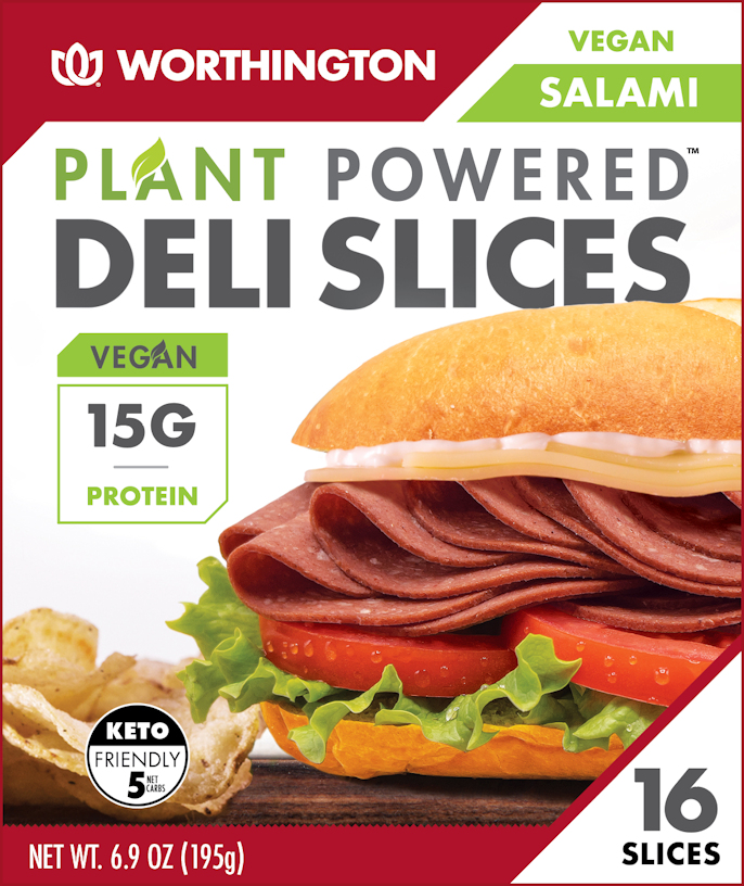You’ll want to make sure your freezer is fully stocked with plenty of frozen meat substitutes such as vegan salami from Worthington Foods.